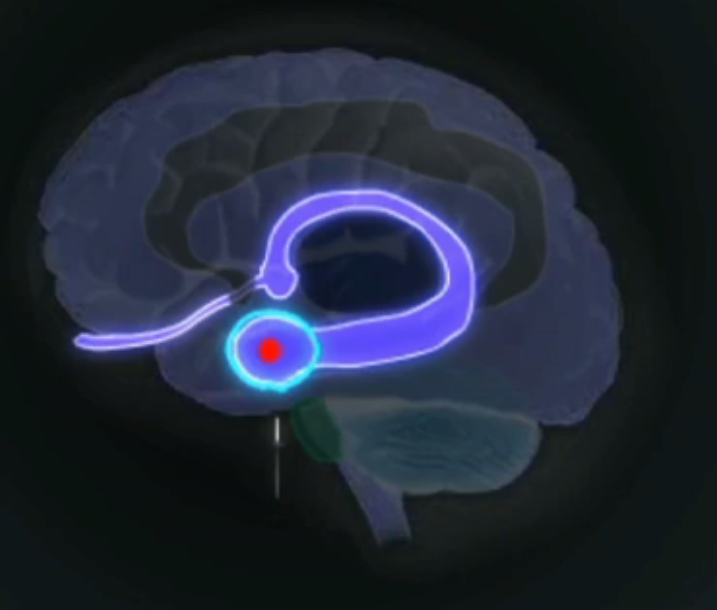Vanaf je neus wordt wat je ruikt zeg maar verstuurd naar dit stukje van je hersenen. Daar wordt het bij het rode stukje in mensen taal omgezet zodat je het kunt plaatsen bij een bepaald beeld.